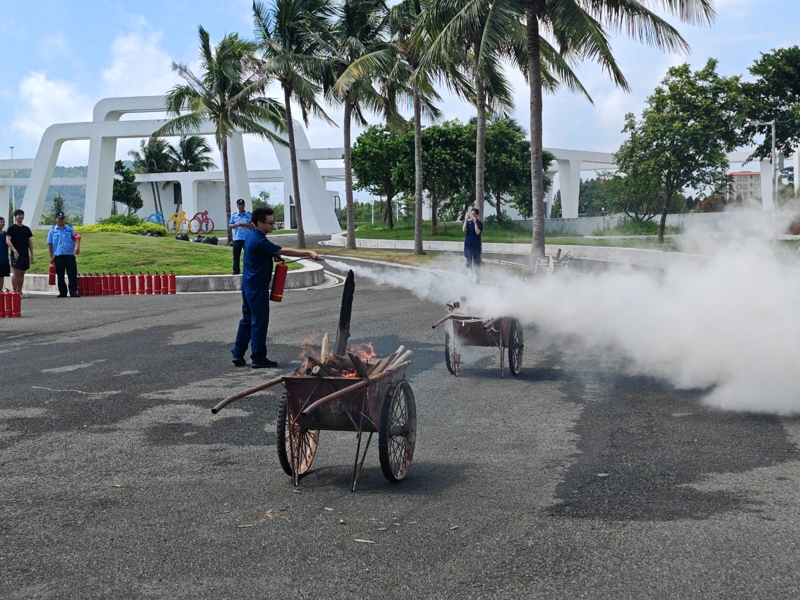 在专家指导下,师生们分组排好队,有序上前进行灭火器使用实操,程序“快、准、狠”,现场气氛热烈,大家表示受益匪浅。