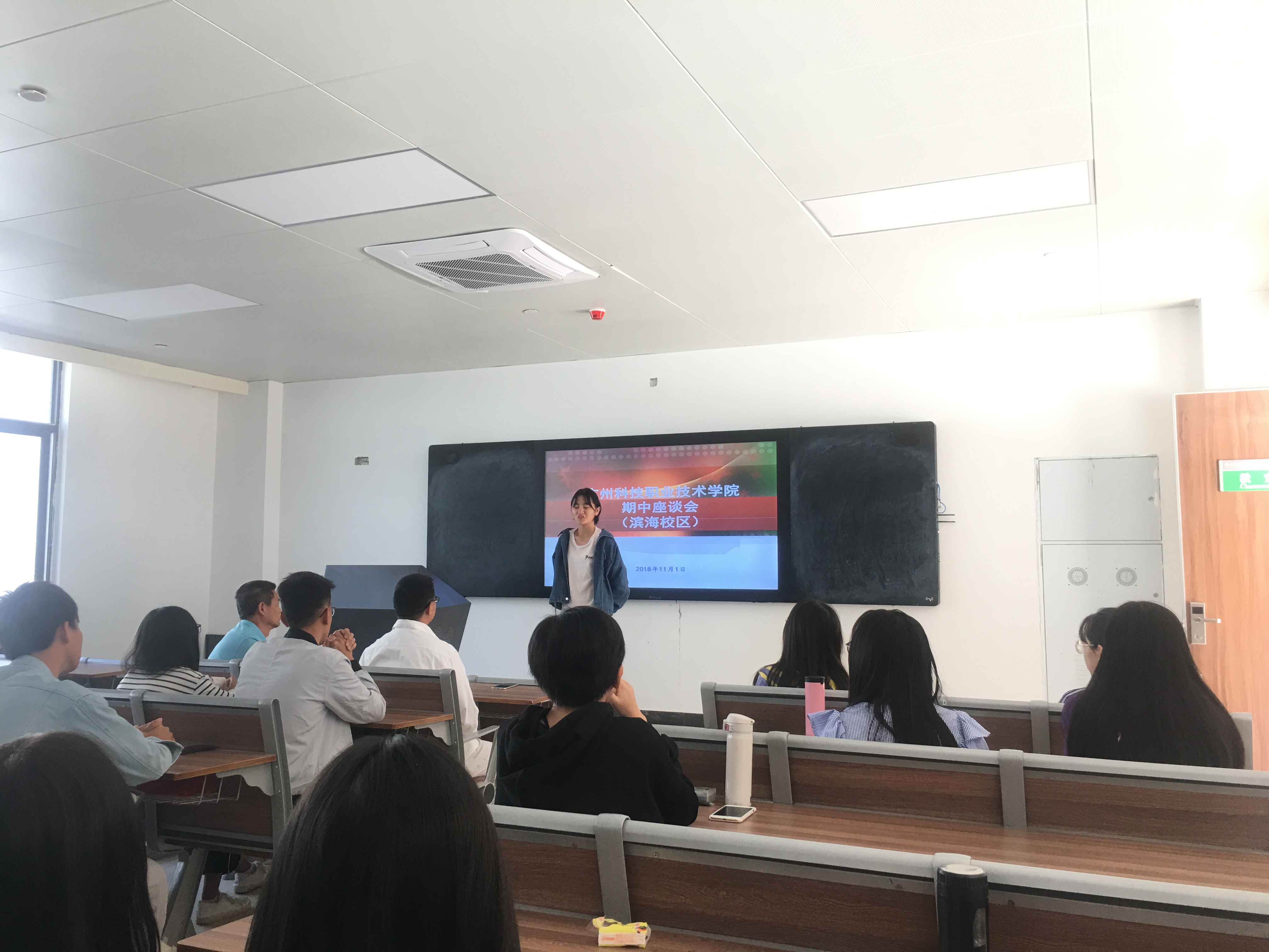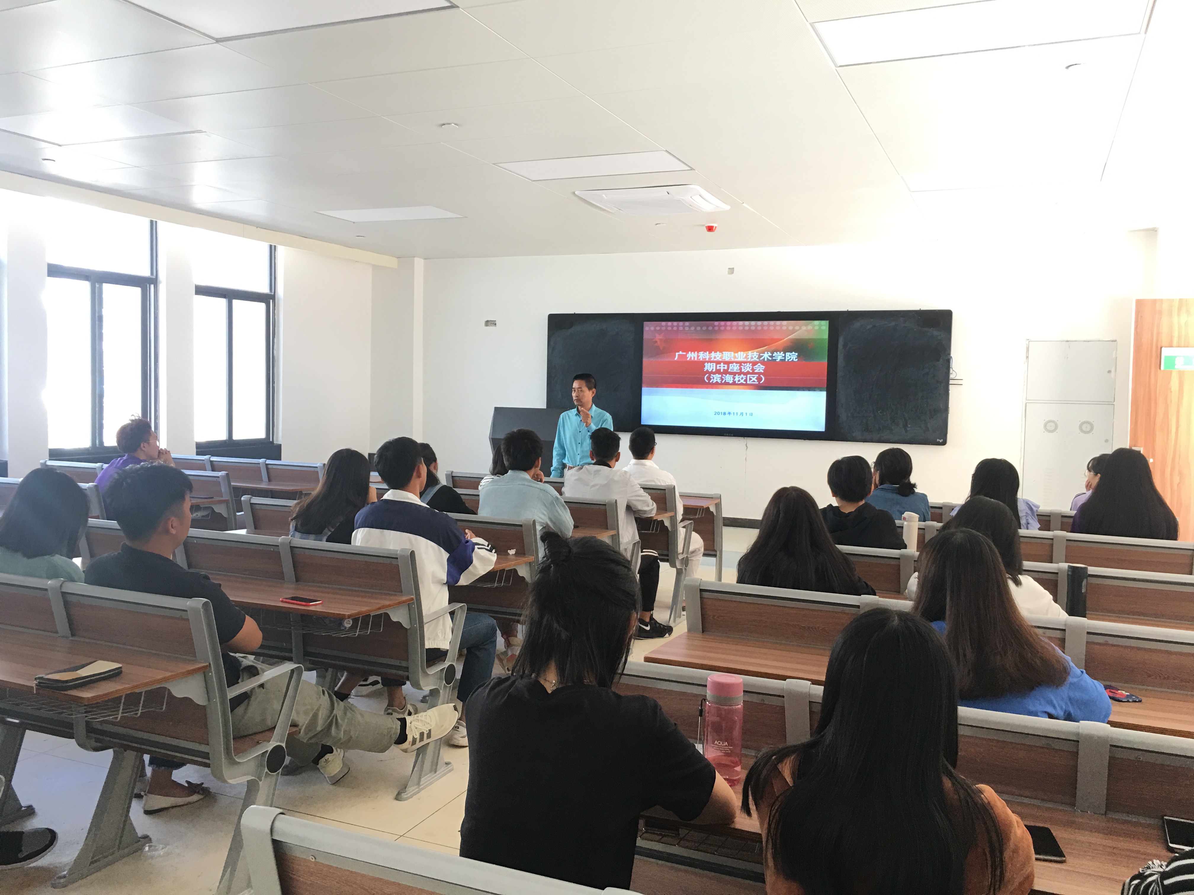 11月1日,广州科技职业技术学院滨海校区在BH2309课室举行期中学情调研会,会议由思政部李丽萍老师主持。滨海校区管理委员会办公室副主任汪在明、曾庆荣参加了座谈会。滨海校区2018级30个行政班级的班长和学习委员参加了本次调研。调研会的目的在了解学生对本学期教育教学、生活服务、社团活动等工作的意见和建议,以便改进学校的工作,提高工作和服务水平。