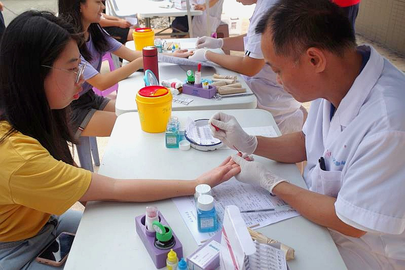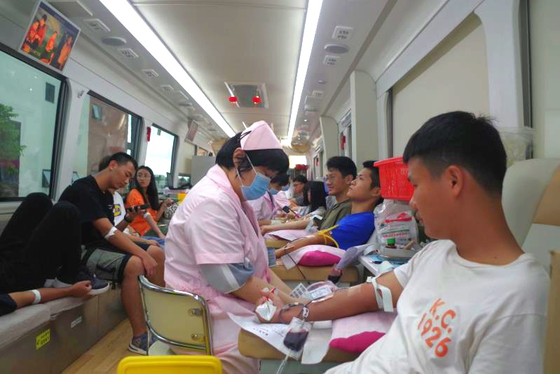 献血是爱,是勇气,是关怀。5月29日下午,广州科技职业技术学院(本科)滨海校区成功举办大型无偿献血活动。茂名市血液中心在我校团委和校青年志愿者服务队协助下开展血液采集。学生们按顺序进行领表登记、血型测定、体检、抽血和观察休息,他们根据自身身体状况各自献出了200ml-400ml的鲜血。 共有135名学生参与了无偿献血,献血总量384003ml。同学们用自己的爱心和汩汩热血,为挽救他人生命奉献出了自己的力量。