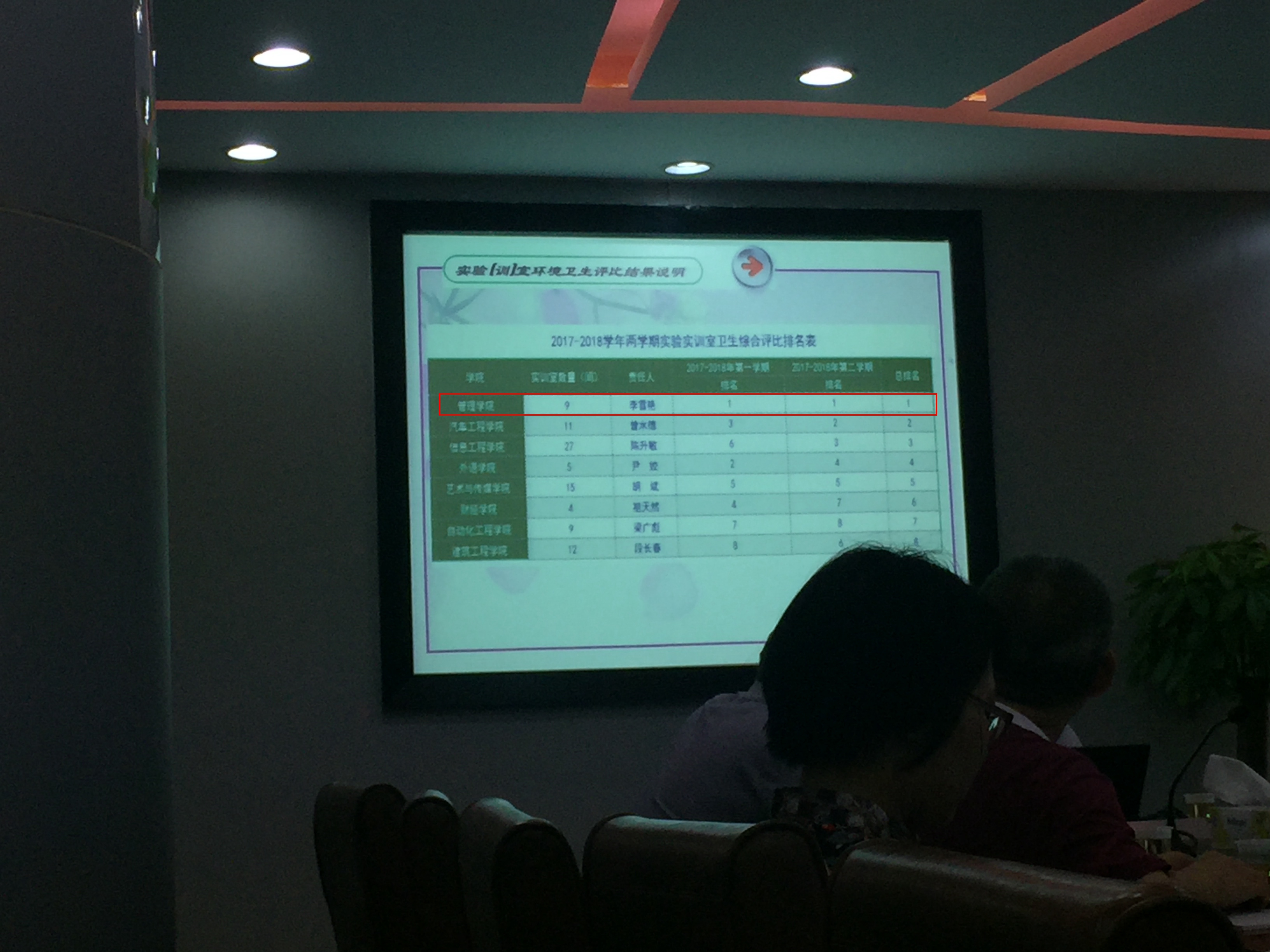 管理学院在此次实训室管理和卫生环境评比中荣获第一名,我们的工作得到了校领导及实训中心领导的充分肯定和赞赏。感谢领导对我们工作的表扬,我们会再接再厉,继续保持,继续坚持在学校和实训中心的领导下,完成好实训室各方面的管理工作。