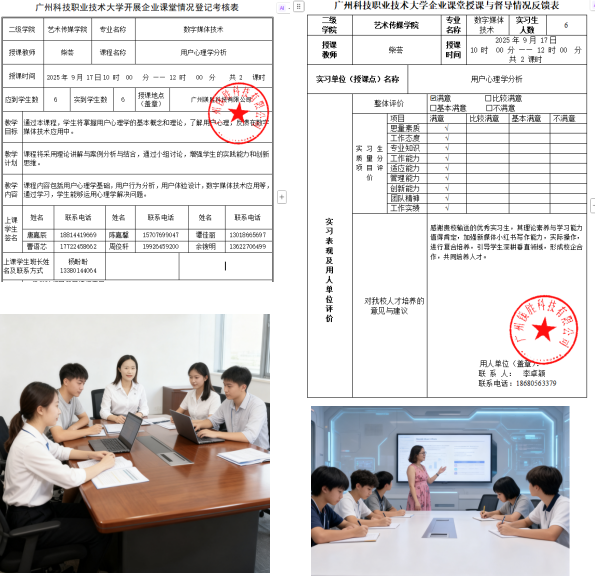 2025-2026学年第一学期开学以来,艺术传媒学院根据学校实习工作安排,制定了教师下企业巡查实习的相关制度和要求。开学两个月以来9月份下企业教师达60余人次,10月份下企业达70余人次,累计巡查、看望学生共800余人,