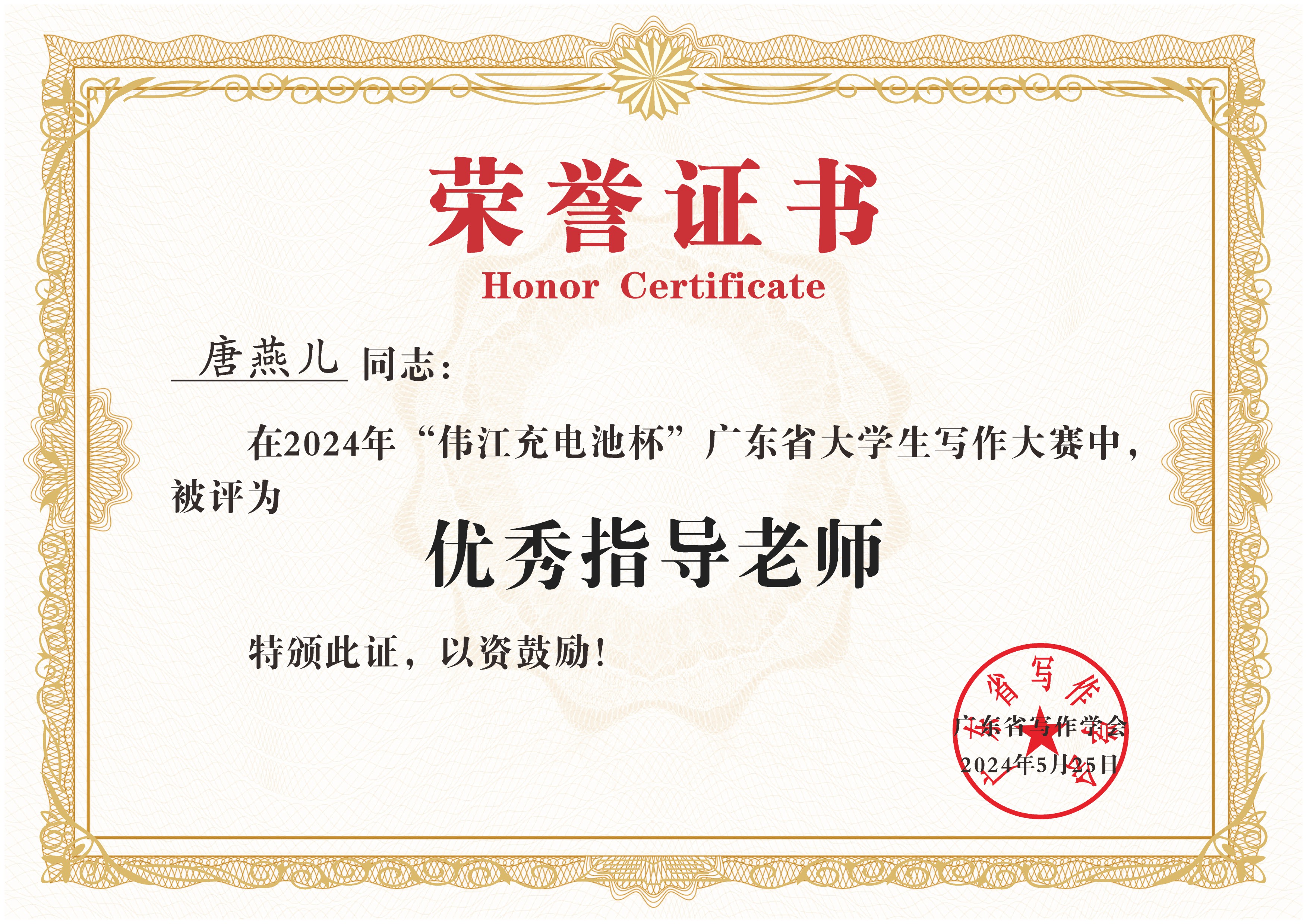 广东省写作学会优秀成果一等奖(唐燕儿)