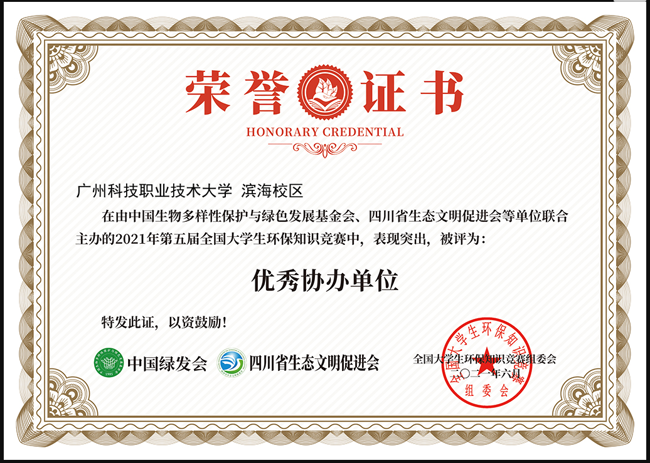 滨海校区荣获第五届全国环保知识竞赛优秀协办单位