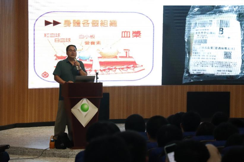 林冰主任为同学们介绍了无偿献血的相关知识。他从“血液常识”、“献血知识”、“献血收益”三个板块分别讲述了血液的组成成分及其生命意义,无偿献血流程和注意事项,无偿献血对个人及社会的影响等等。他列举了许多现实生活中献血救人案例及自身献血的经历,说明无偿献血的重要性不但是给予急需用血的他人予以帮助,更是为自己留下一份未来的用血保障。他呼吁同学们积极参与无偿献血。