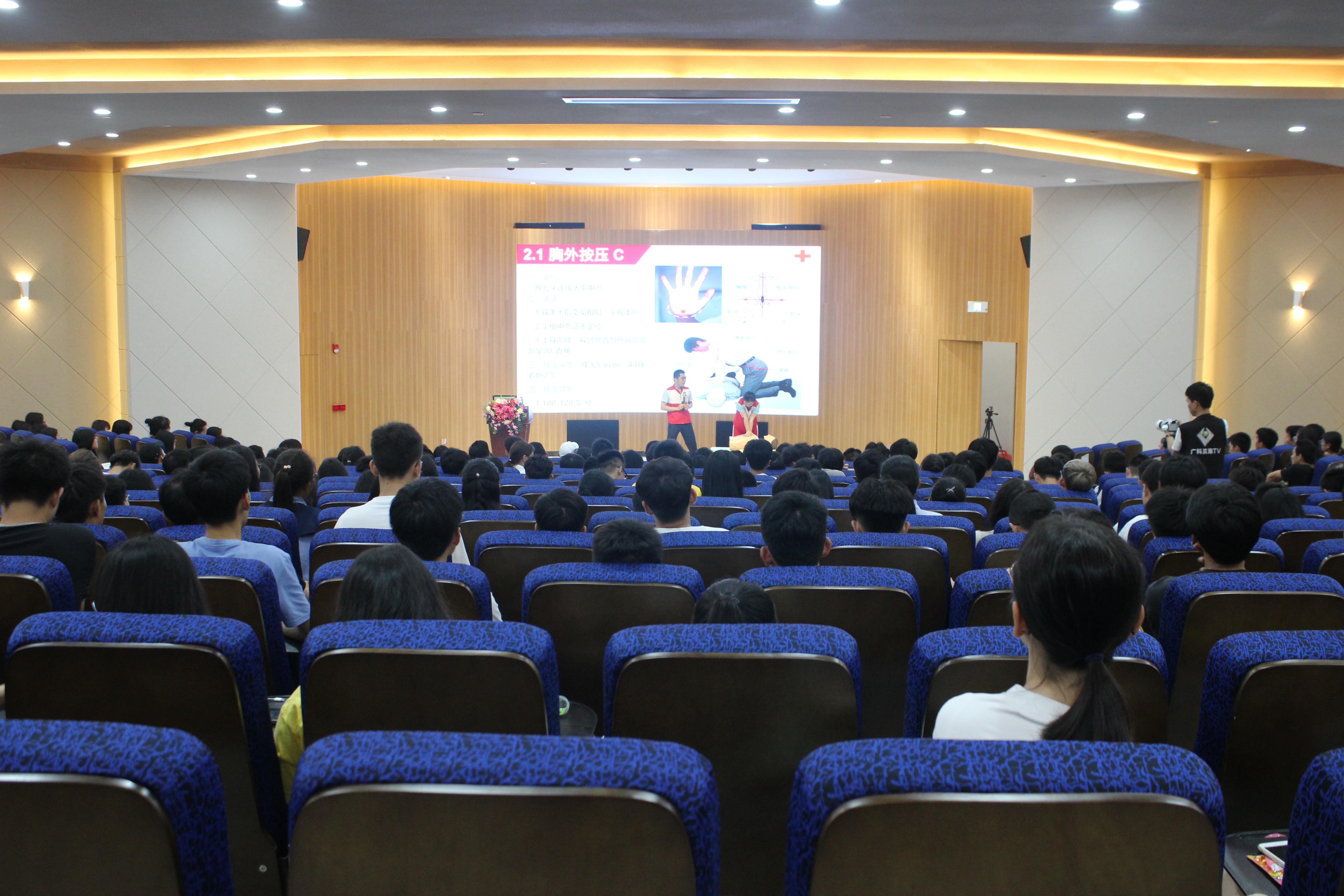 5月15日,茂名市红十字会应急救护讲师高波、肖少容等专家到滨海校区开展急救知识讲座。本次讲座包括心搏骤停的CPR急救五环,创伤急救的止血包扎和固定搬运,气道异物梗阻急救,溺水救生,火灾逃生和烫烧伤处理等五个方面内容。