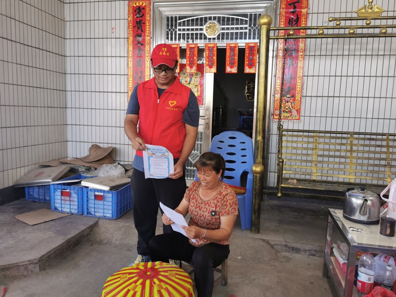 图三,志愿者在开展防溺水,防诈骗,垃圾分类和乡村振兴政策的入户宣传