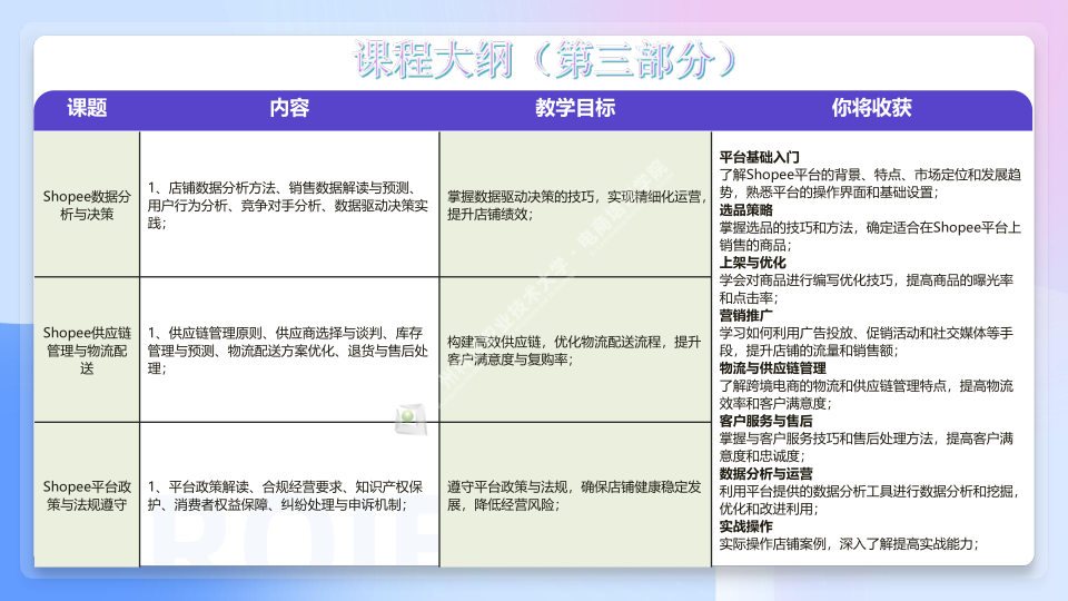 了解Shopee平台的背景、特点、市场定位和发展趋势,熟悉平台的操作界面和基础设置