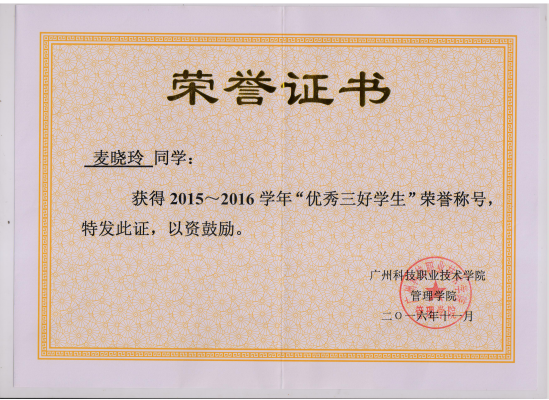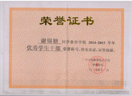 工商管理专业优秀学生奖获奖代表