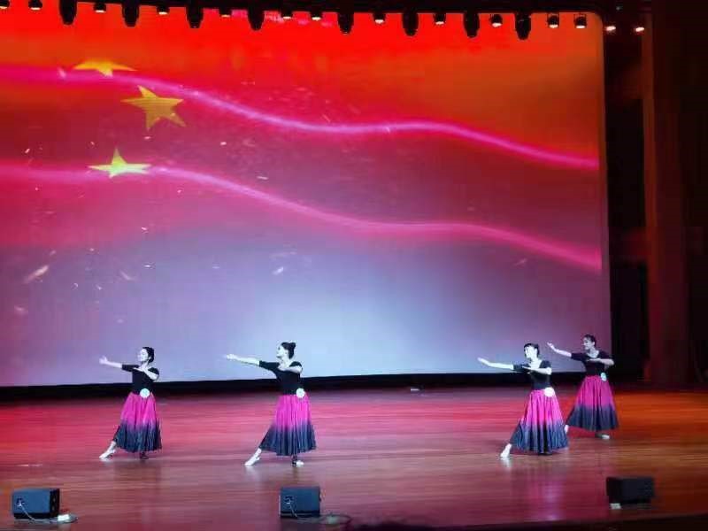 图为经管女教职工民族舞《我和我的祖国》表演