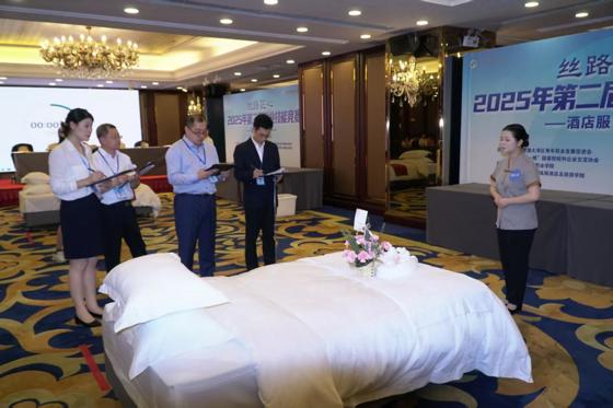 作为响应 “一带一路” 倡议、助力粤港澳大湾区建设的重要赛事,本次大赛由粤港澳大湾区青年职业发展促进会与 “一带一路” 国家院校和企业交流协会联合主办,吸引了全国多所院校酒店专业学子同场竞技。赛项设置前厅接待与客房服务两大模块,前厅环节聚焦酒店信息系统操作与宾客服务流程,客房环节则考验中式铺床技术与主题创意布置能力,全面考察选手的职业素养与实践水平。