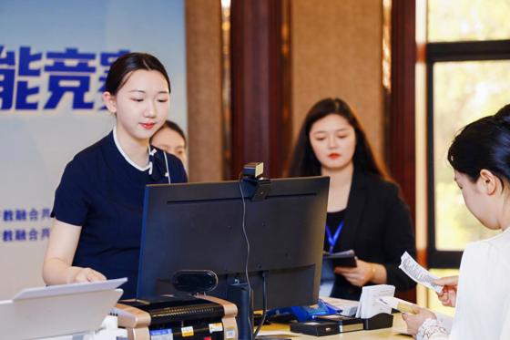赛场上,两支队伍分工明确、配合默契:前厅选手熟练运用酒店预订系统,从入住登记到退房服务全程以英语流畅沟通,精准完成客房推介与需求响应;客房选手在 15 分钟内高效完成中式铺床,床单抛单定位一次成型,主题讲解环节仪态大方、创意阐述清晰,充分展现了 “以赛促学” 的训练成果。经过两天激烈角逐,该校两支队伍均以高分荣获一等奖!