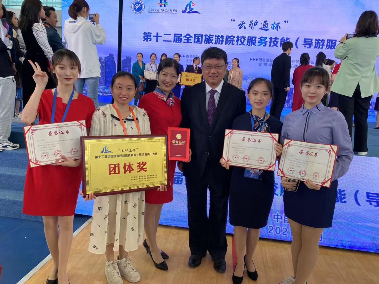 2021年5月14日-16日,我校经济与管理学院陆林、黄晓敏、胡爱婷、向雪凌峰4位同学参加“云驴通杯”第十二届全国旅游院校服务技能(导游服务)大赛,取得了1项大赛团体奖、3项个人二等奖、1项个人三等奖的优异成绩。