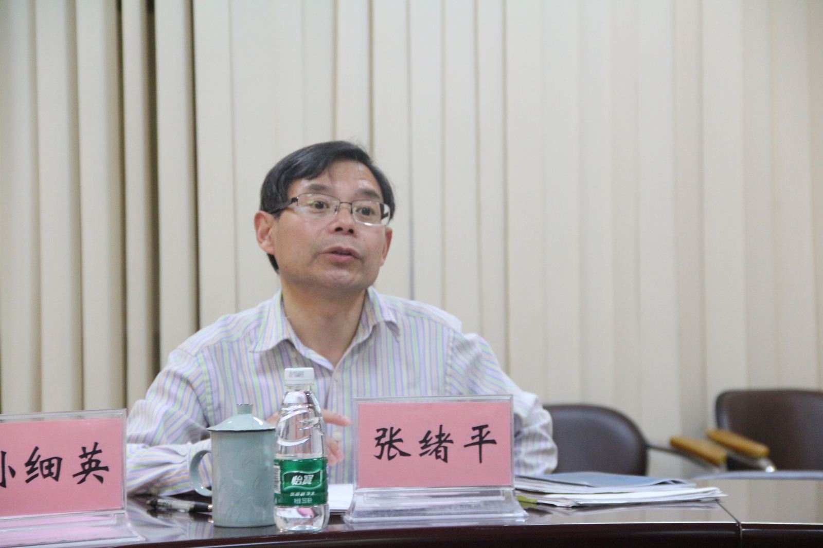 图为:广东白云学院基础部张绪平主任介绍相关情况