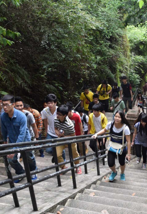 来到华南理工大学,同学们参观了华工著名的景点——中山像、百步梯、日晷仪、金银岛、逸夫人文馆、校史馆、校训石等。同学们在参观校训石时,对巨石上刻画着的“博学之,审问之,慎思之,明辨之,笃行之”的十五个大字尤其兴趣浓厚,据华工的导游介绍,这15字源自《礼记·中庸》,华工新校训从其中提炼八个字“博学慎思,明辨笃行”,组成两句,既体现了历史文化传承,又有所创新,且高度精炼、寓意深刻,内涵丰富。午餐后,同学们还兴致勃勃地参观了华工学生宿舍。