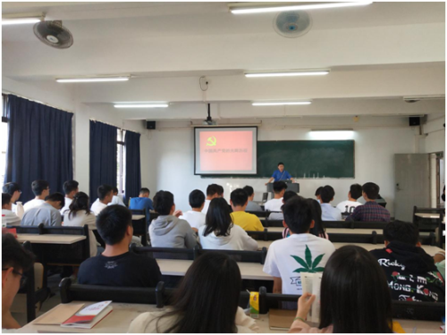 2018年10月31日星期三下午2:00,建工学院2018年初级党课培训在1210教室和1410教室举行。本次初级党课培训班100多名2018级入党积极分子参加。主要内容共四个专题:一、积极加入中国共产党是高校学生的正确选择;二、入党的手续和程序;三、中国共产党的性质和宗旨;四、党的光辉历程。