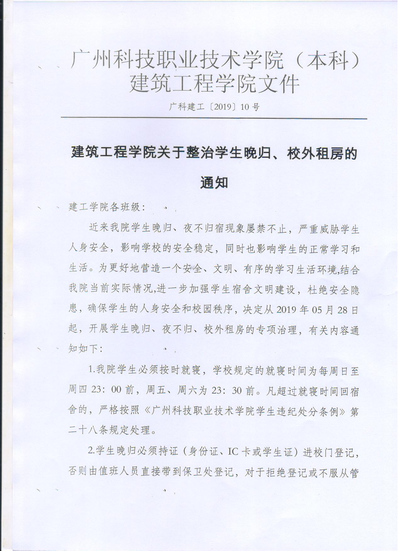 建筑工程学院关于整治学生晚归、校外租房的通知