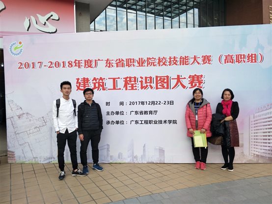 2017年12月22日到12月23日,2017-2018年度广东省职业院校技能大赛(高职组)建筑工程识图大赛在广东工程职业技术学院举行。我院选派的由温倩慧老师领队,董晶老师、吴燕老师指导的16造价设计2班林海槟、16建筑设计1班吴其昌两位同学组成的参赛代表队在来自全省各高职院校的38支队伍的76名学生中,经过激烈的角逐,荣获二等奖,全省排名第6名的佳绩。