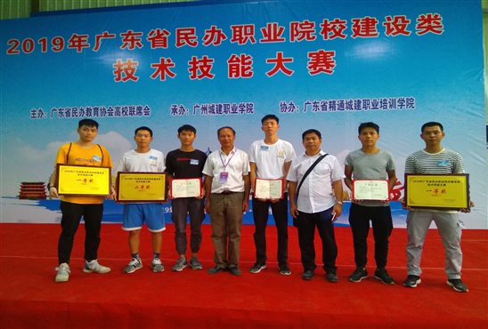 金秋送爽,阳光明媚。2019年09月28日,乐鱼手机平台_乐鱼(中国)建筑工程学院胡先国老师带领17级建筑工程技术1班学生:吴俊鹏、彭锦晖、赖志颖,18级建筑工程技术2班学生梁伟铭、祝桂超、陈道丰一行七人,到广州城建职业学院参加2019年广东省民办职业院校建筑类技术技能大赛。在广东省精通城建职业培训学院的竞赛场,参赛单位来自广东省民办职业院校的各高校,砌筑赛组共13个队,钢筋下料与绑扎组9个队,参赛各高校均安排一名钢筋评委,一名砌筑评委。我院李佰承老师任钢筋组评委,郭启康老师任砌筑组评委,我院参赛二个砌筑组,一个钢筋组的学子轻松上阵,按赛场规定通过识图和下料及实操的竞赛,以砌筑组一等奖和二等奖及钢筋组一等奖集体全胜,获得总体第一的好成绩。