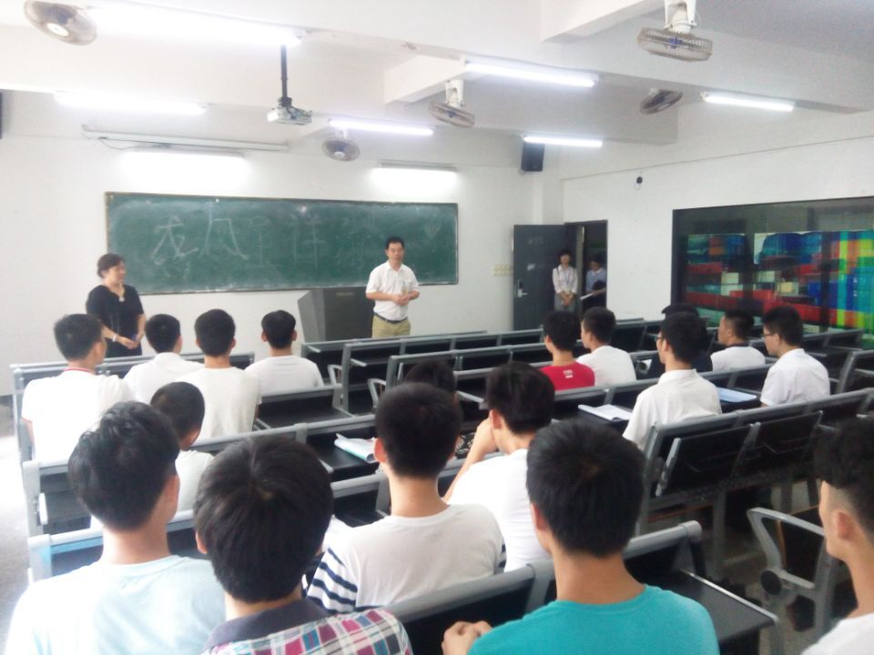 2016年7月5日,学期期末临近,各门课程考试正有序地进行着。考试周的紧张氛围,丝毫阻挡不了我院与校企合作的热情。今天,中山一加恩建筑装饰工程有限公司莫开普总经理率队来访,共同探讨大学生校外实践基地的建设方案,并对今年开办订单班的计划的可行性达成共识。学校就业办潘世华处长出席。洽谈会上,项目负责人梁进宇老师首先宣讲了大学生校外实践基地项目的建设方案,杨锐院长介绍了《学生作业展》活动情况,由衷赞赏我院师生们的专业质量及能力。莫总对建设方案的内涵及可行性高度评价,并对精诚合作、互利共赢充满信心。会后,一加恩公司参观了我院梁进宇、刘莹老师筹办的《园林景观设计》和《公共建筑设计》课程设计作业展。下午,该公司开展了企业宣讲活动以及启动实习生招聘工作。一加恩公司良好的行业信誉,赢得了学生们的青睐,招聘场面非常热烈。动员宣讲会后,莫总亲自与学生沟通,完成了招聘实习生工作。