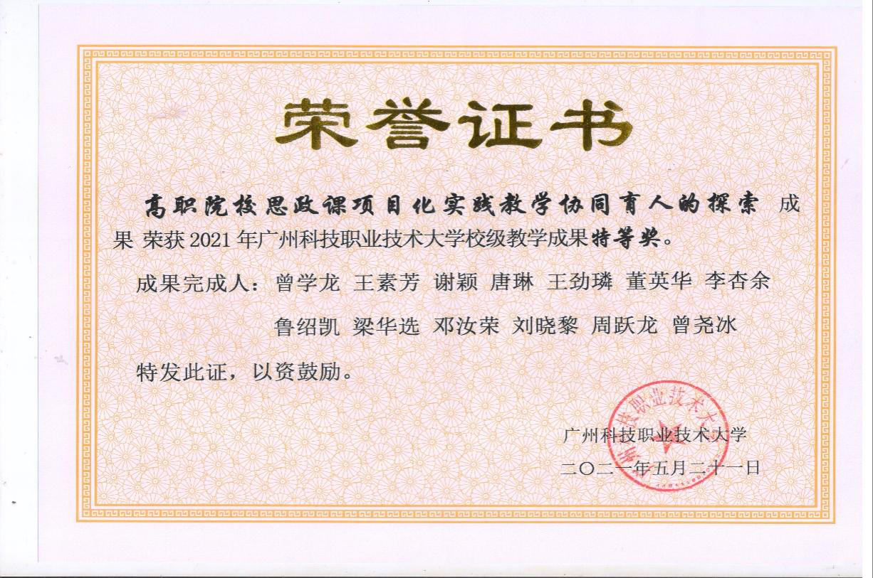 您现在的位置: 首页 >> 依托“项目化”实践教学,推动四政课堂改革创新 >> 佐证材料 >> 教学成果奖 > 正文