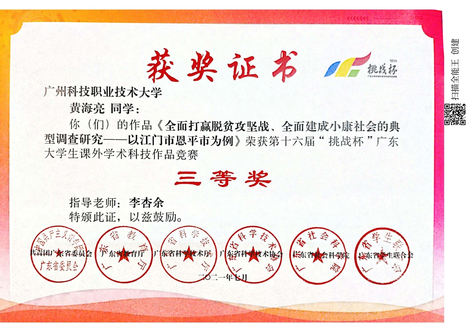 下一篇: 李杏余等指导学生获得第十六届挑战杯“三等奖”