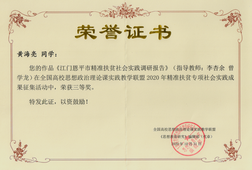 下一篇: 李杏余指导学生获得“全国大学生思政课微课开发成果共享大赛”三等奖(1)
