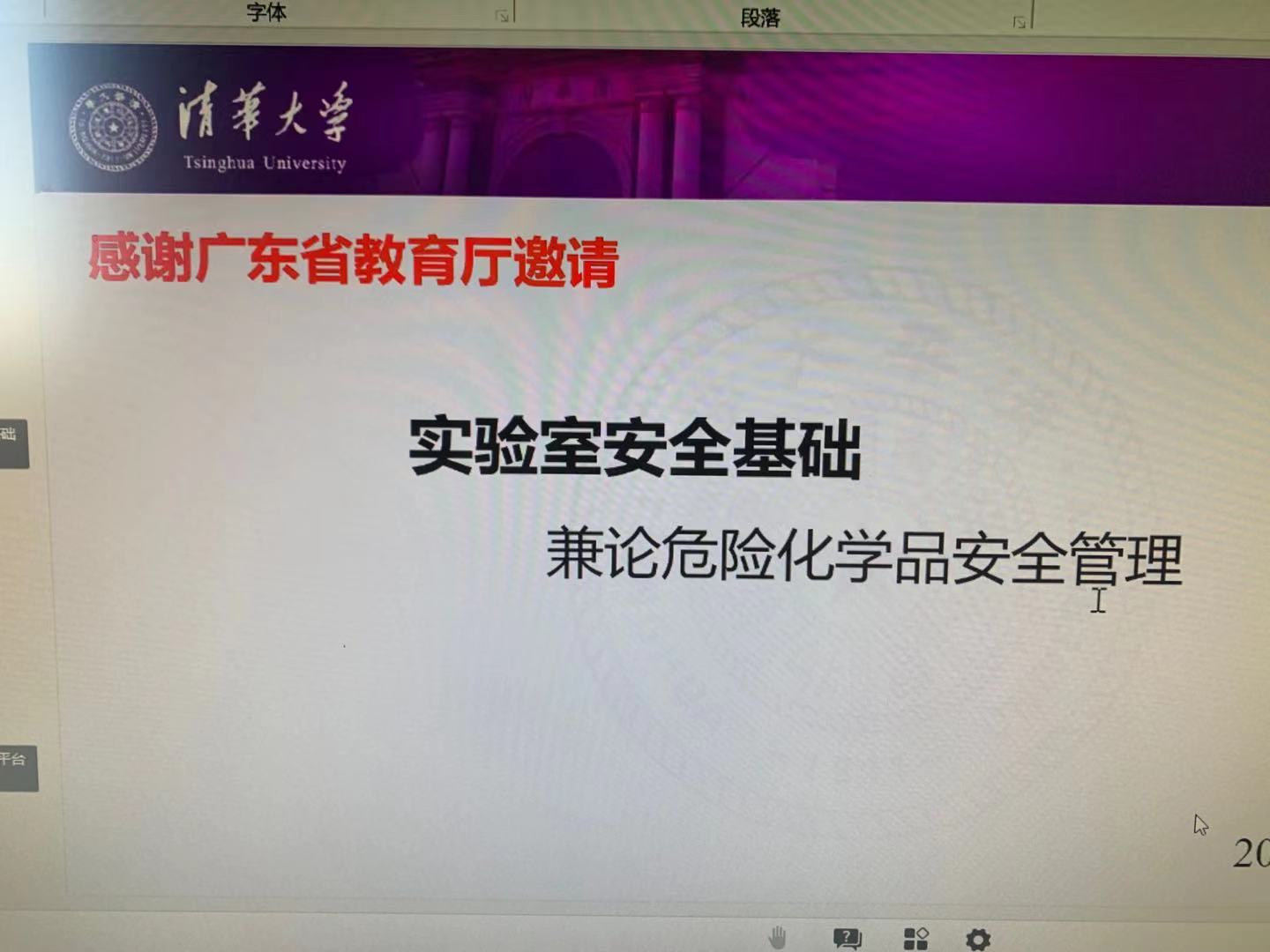 为进一步加强我省教育系统实验室安全建设,提升全省实验室安全管理水平,广东省教育厅于12月3日在南方医科大学以“线下+线上”的形式,举办广东省教育系统实验室安全建设与管理教育宣讲活动。我校实训中心主任梁世强以及各二级学院分管实验教学工作的领导、全体实验室管理人员和技术人员等参加了线上视频会议。
