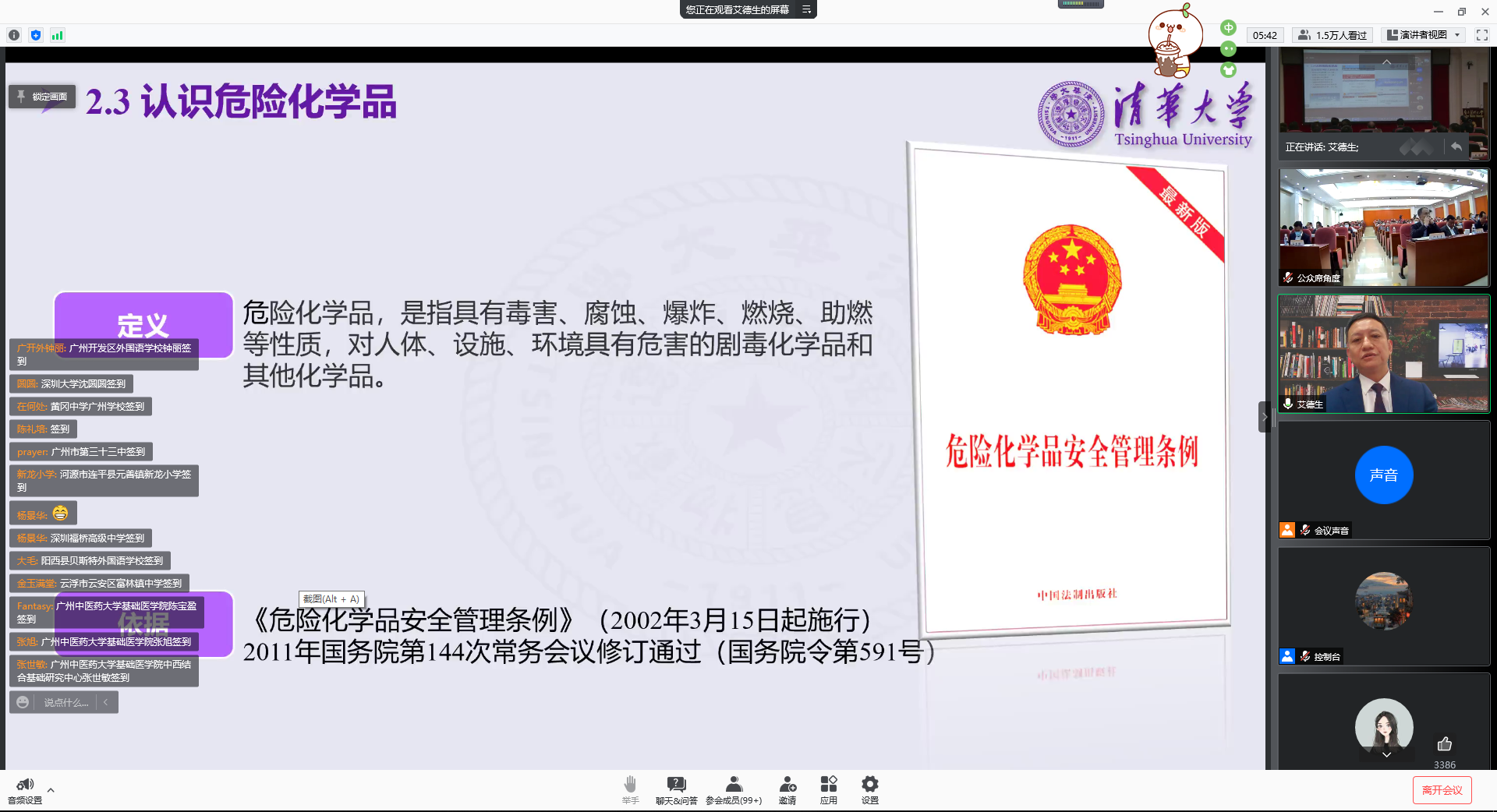 本次会议还特别邀请清华大学实验室与设备管理处副处长艾德生教授作关于“实验室安全基础兼论危险化学品安全管理”的专题讲座。艾德生教授在讲座中介绍了安全文化、实验室化学安全、如何做好实验室安全以及实验室安全的技术逻辑与实践。