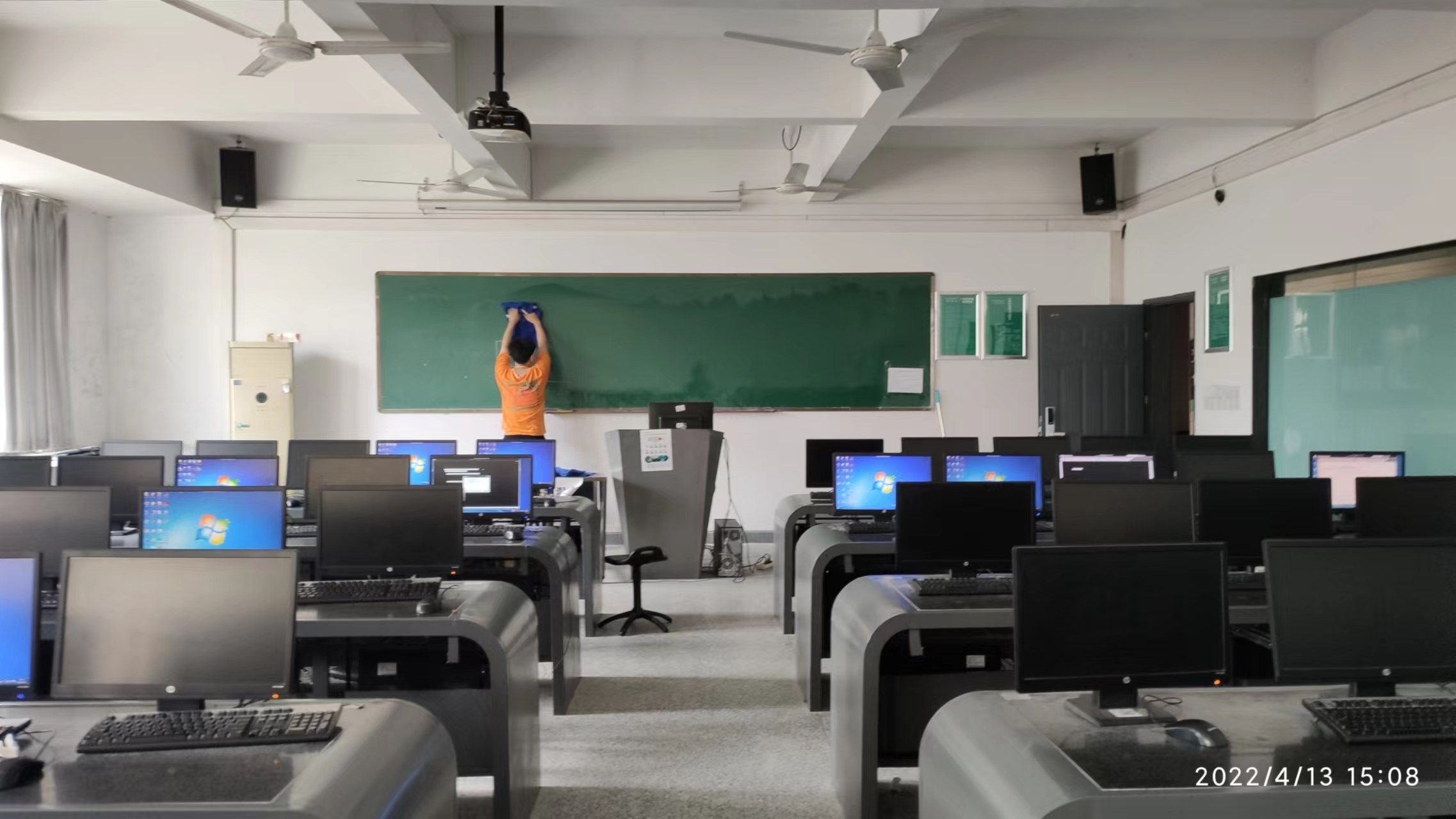 4月11日至22日,实训中心维修科刘举老师、综合管理科周玉娴老师带领3名勤工学生,抓住线上教学两周的宝贵时间,对10间老旧公共计算机房开展系统性维护: