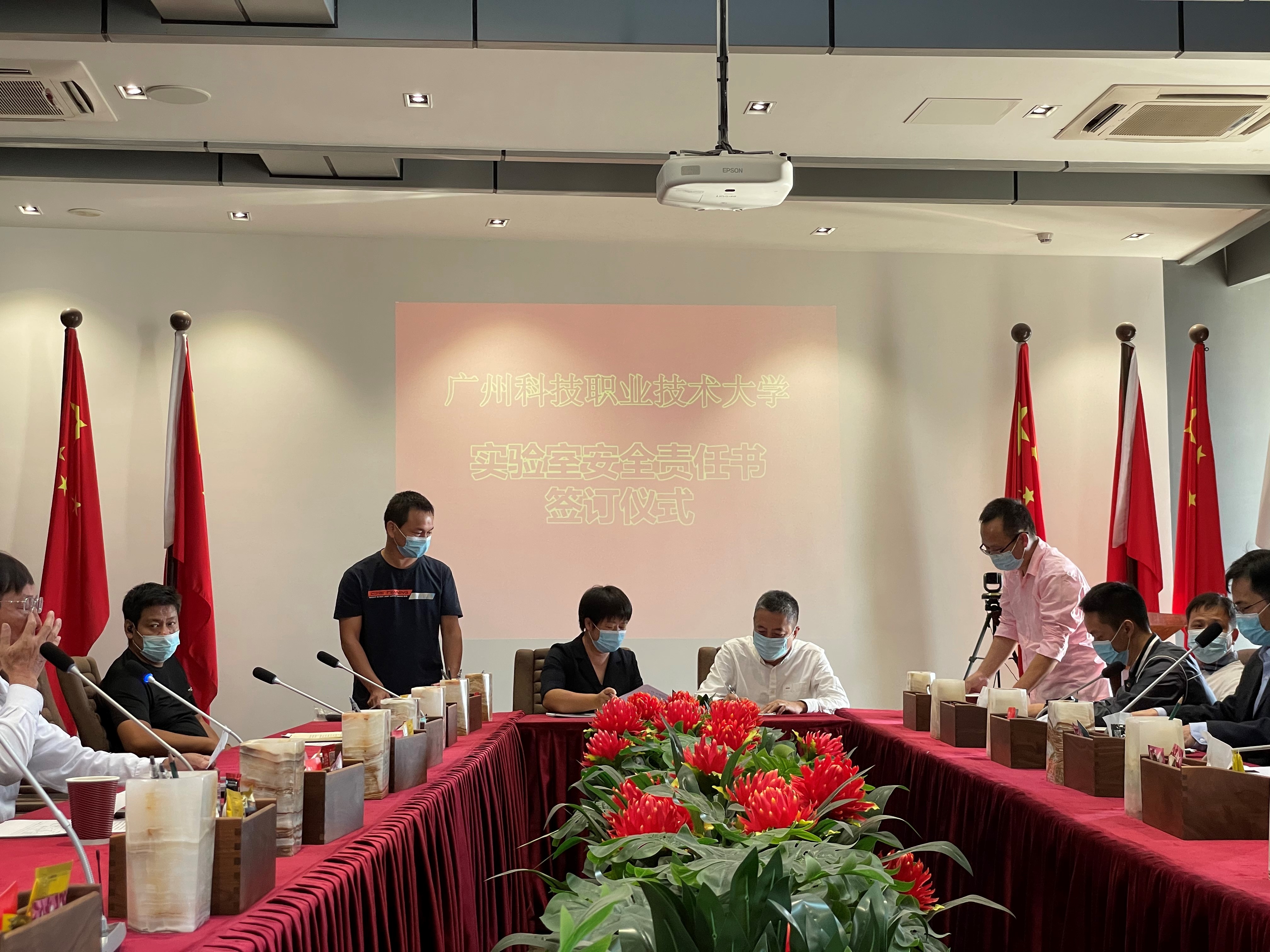 最后,由董汝萍副校长代表学校,与学校实训中心和各二级学院签订实验室安全建设与管理工作目标责任书,会议结束后合影留念。