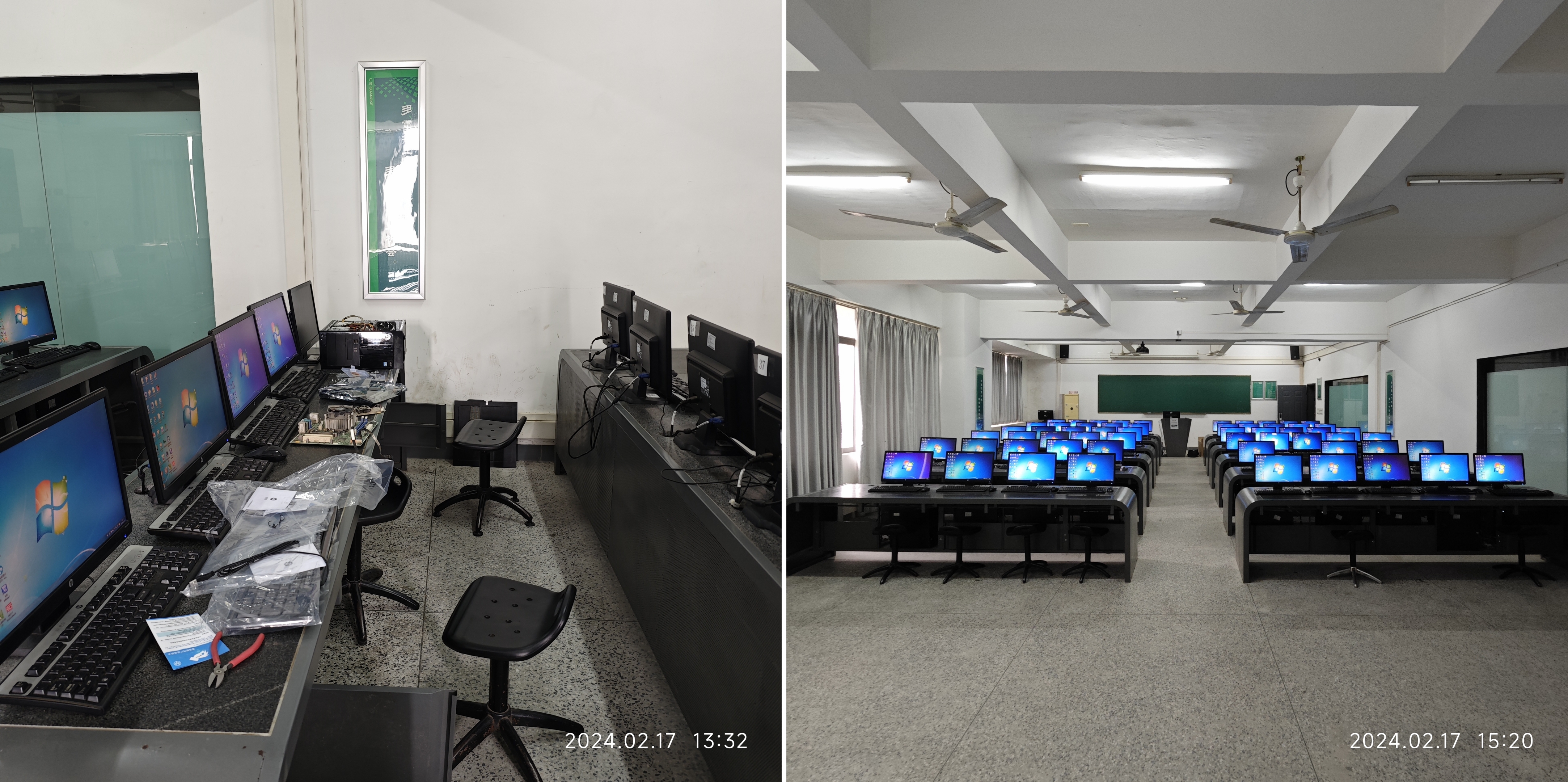 2024年2月17日至18日,维修科提前对分管负责几间公共计算机实验室(编号:6302、6303、6304、6305、7415)约305台的老旧电脑设备进行维护工作,内容包括: