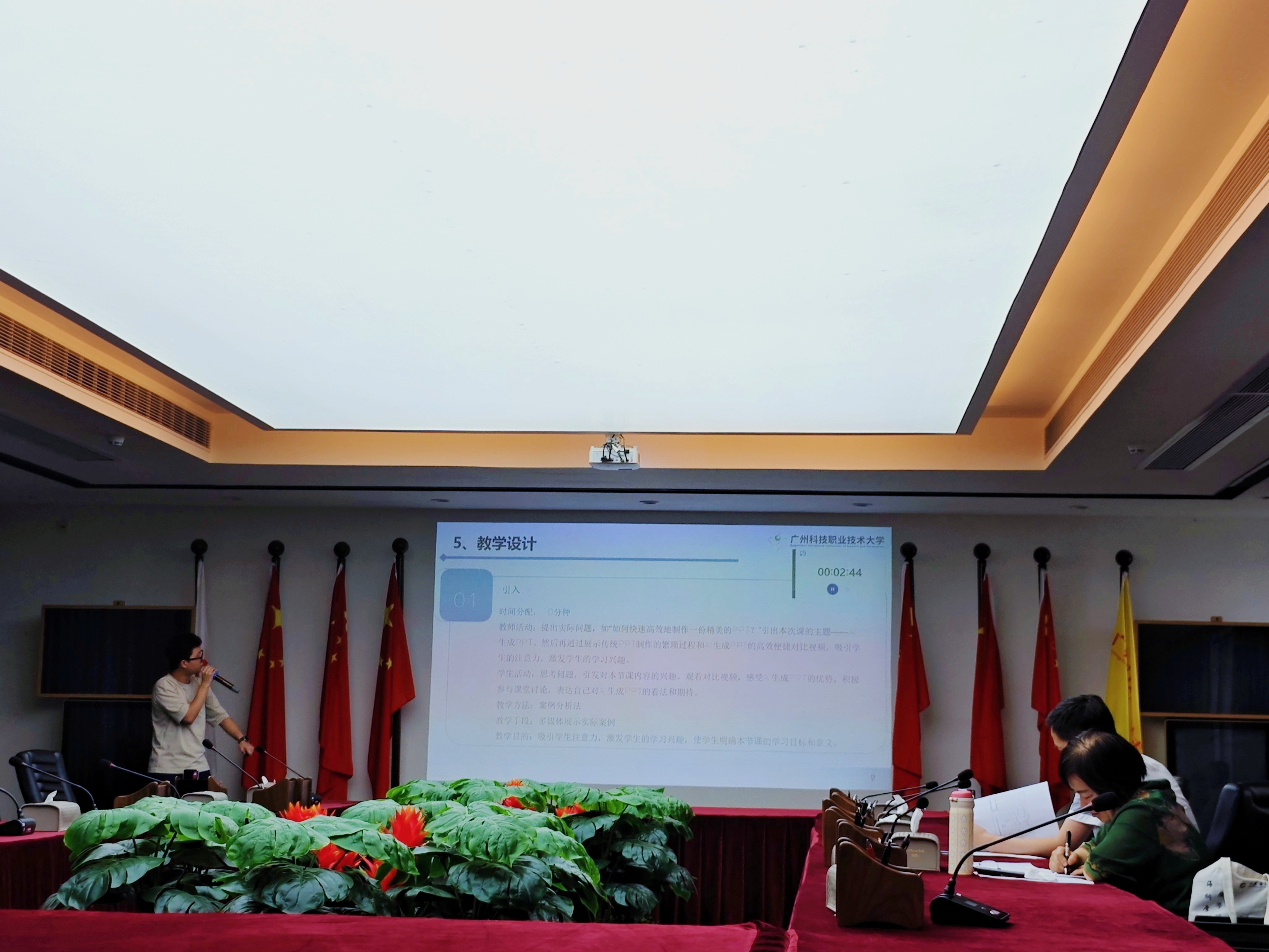 全体参评教师按照事先抽签顺序,进行6分钟限时说课。人工智能与大数据学院的李嘉骏老师,选择《数字电子技术》中组合逻辑电路的设计与实现作为本次说课内容,通过仿真模拟软件Multisim引导学生设计组合逻辑电路,并购买元配件进行实物搭建,做到了理论与实践相结合。人工智能与大数据学院的余梓键老师选择《人工智能概论》中AI应用:PPT的智能生成作为本次说课内容,引导学生通过大模型生成PPT的结构化大纲,运用AI工具将结构化大纲转化为完整的PPT,使学生能够灵活运用人工智能技术解决实际问题。
