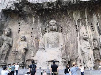 第六站,龙门石窟。中学时上历史课,就知道了河南龙门石窟闻名遐迩,此次游览果然名不虚传。它位于河南省的洛阳,司马光曾说,“若问古今兴废事,请君只看洛阳城”。今年暑假,终于有幸来到这个见证了多少成王败寇、兴盛衰败的地方,感受这座中国历史上唯一被称作“神都”的城市的魅力。走在杨柳依依的伊水河畔,望着郁郁葱葱的青山,没想到北方也有如此秀丽的景色。