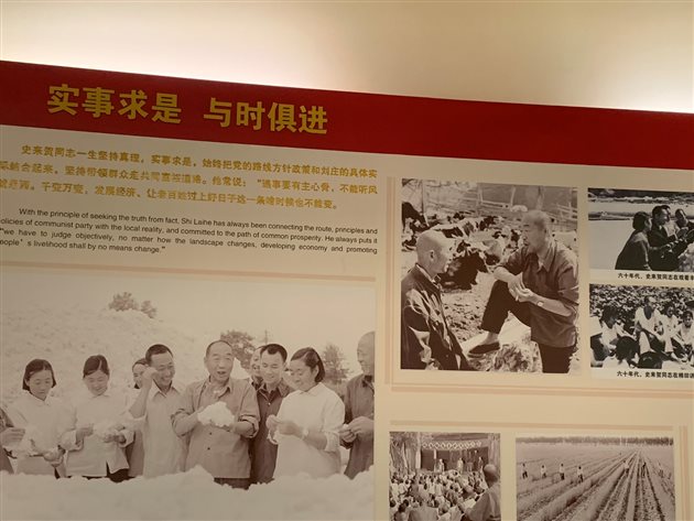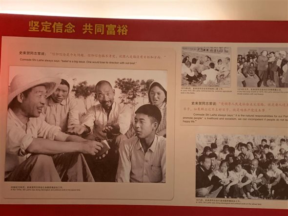 新乡县七里营镇刘庄村绿草如茵,鸟语花香。一座新颖的三层建筑是刘庄展览馆史来贺同志纪念馆。纪念馆占地19亩,建筑面积4000多平方米,12个展厅,布展照片300多幅,各类展品100余件。史来贺从任村支书的那天起就立下誓言:“跟党走,拔掉穷根,让老百姓过上好日子!”他带领刘庄人从肩挑、填沟到办小作坊、建设全国最大的以生产肌苷为主的生物制药厂......他用尽了一生的心血,兑现了入党时的庄严承诺,不忘初心,继续前进。