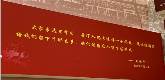 焦裕禄以冲天豪情谱写了一曲改天换地的英雄壮歌,他心里装着的是36万兰考人民的疾苦,他始终保持着公仆本色,忘我工作,直到生命的最后一刻仍然惦记着风沙的治理,他说“我活着没有治好沙丘,死了也要看着把沙丘治好”。这次现场教育活动给我们上了一堂生动难忘的党课,学习弘扬焦裕禄同志“心中装着人民,唯独没有自己”的公仆情怀与实事求是的作风,以及“敢叫日月换新天”的奋斗精神。习近平参观时的一句话引起了我们的