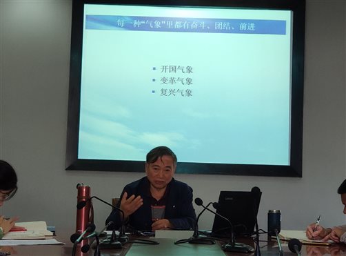 为了深入学习贯彻党的十九届四中全会精神,扎实推进 “不忘初心、牢记使命”主题教育,思政部党支部于2019年11月20日中午1:00召开了支部党员大会传达了会议精神,并邀请思政部主任曾学龙教授为支部党员做了《开辟“中国之治”新境界——深入学习和把握十九届四中全会的精神内涵》的专题辅导报告。