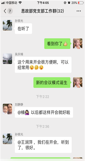 王润萍报道:为贯彻落实《中共广东省委教育工委关于全省教育系统在防控疫情中进一步发挥基层党组织战斗堡垒作用和党员先锋模范作用的通知》文件精神,思政部党支部按照学校党委的工作部署,于2020年2月17日下午两点召开了一次关于防控新冠肺炎疫情的支部网络视频会议,真正让身处各地的党员有了一个“网络新家”。本次网络视频会议是一次全新的会议模式的尝试和探索,党员们通过腾讯会议这一网络平台进行了有效的沟通和交流。