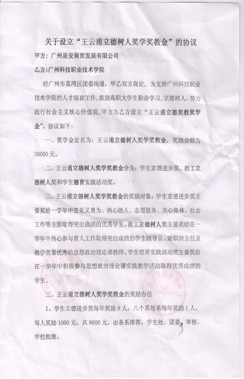 获得企业资助的德育奖学奖教金2个
