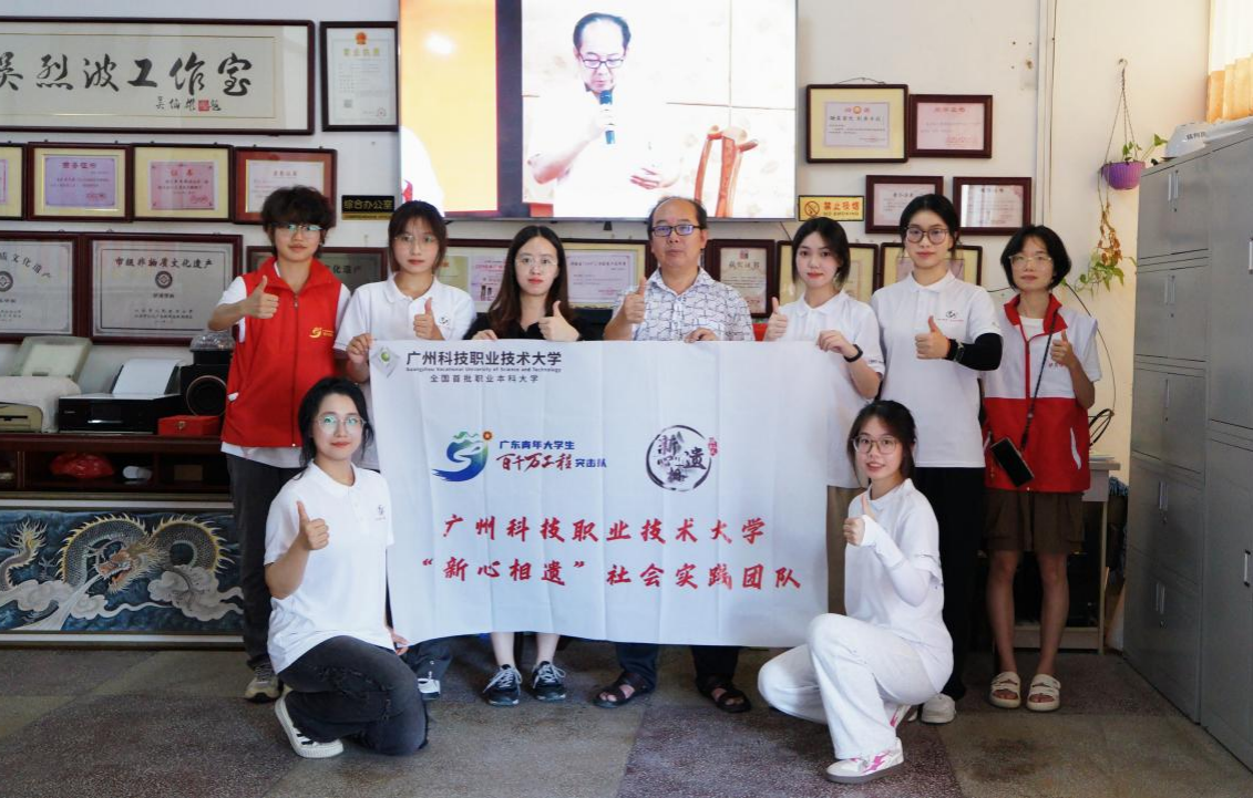 (图片为“新心相遗”实践团与吴义廷老师和团委负责人在工作室内合影)
