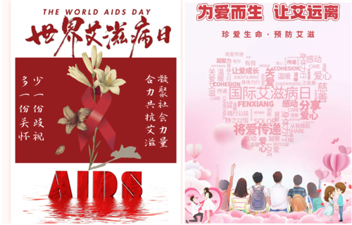除此之外,校青志还在线上开展了“为爱而生,让艾远离”为主题的海报设计比赛,全校同学积极参与其中,通过软件和手绘的方式设计海报。参赛作品紧紧围绕传播途径、自我防护、感染者关爱与支持、反歧视等方面进行创作,兼具科学性、创新性等。通过设计预防艾滋病海报比赛,更好的提高了同学们对艾滋病的认知与防范意识。线下设置了富有互动性的展位宣传,通过拥抱和互动问答等多种形式,提高了同学们对艾滋病的预防意识,诸多活动充分展现了同学们支持艾滋病防治及反歧视方面的工作。