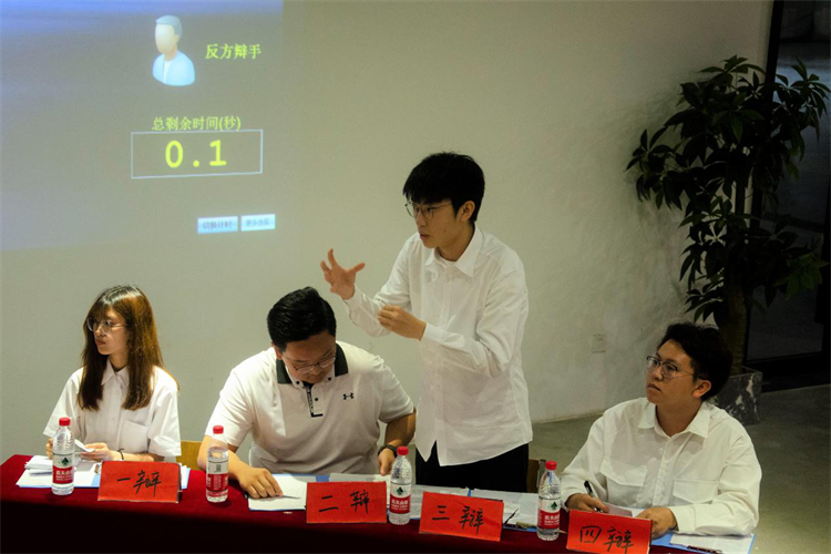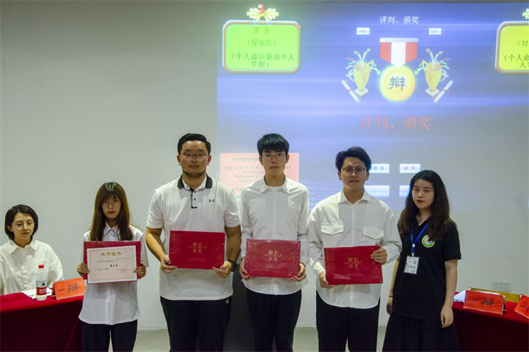 5月17日15时于广科大新图书馆新书发布厅举办“广科大2021年校级辩论赛决赛”,辩题为“个人命运是/不是由个人掌握”;由团委办公室老师华慧,一言辩论协会指导老师黄碧莹,团委办公室苏景龙师兄,校学生会主席团成员蔡仰、邓佳婕,一言辩论协会会长余燊仪共同担任本次决赛评委。