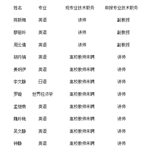 关于外语外贸学院专业技术职务申报人员情况公示的通知