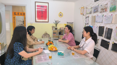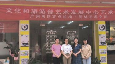图为我院副院长杜艳红、张凌梓老师与阁林艺术林文佳女士、我院实习生李祝梅合影