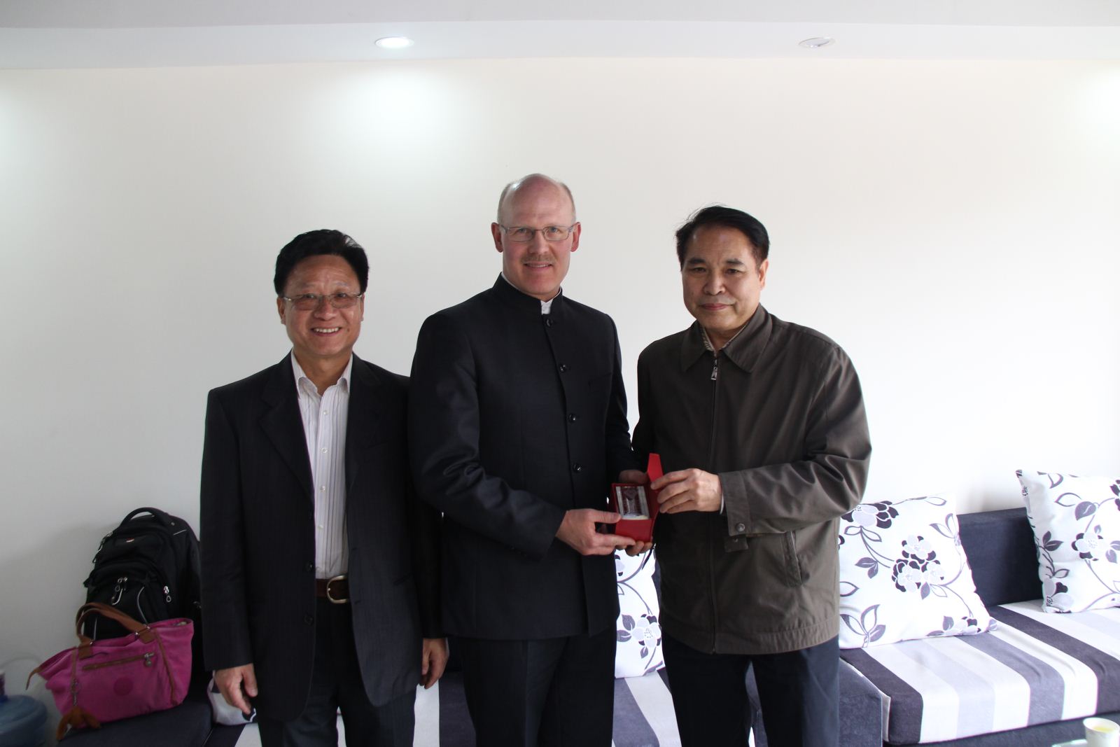 325日上午,加拿大西三一大学商学院院长Murray D. Mactavish教授一行三人来我院访问,学院院长崔英德教授、副院长李莹会见了来宾,双方就2015年在广科院合作开办商务英语(跨境电子商务方向)2+2专本连读国际创新班事宜进行了商谈并达成共识。外语系主任方玲玲、副主任尹姣、支部书记邱健等参加了会见。当天上午,来宾们还与外语系部分师生进行了交流.
