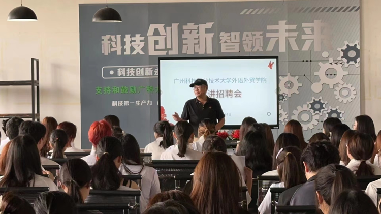 为做好毕业生就业工作,促进学生高质量就业,2023年6月14日,我院于3416 创新创业活动室举办专场宣讲招聘会。此次活动邀请了华南电商产业科技(深圳)有限公司、佛山市瑞登帐篷有限公司等8家企业进行宣讲招聘,提供了跨境电商运营、推广、外贸业务员、外贸跟单等50个岗位。我校校企合作与实习就业处副处长邱健;外语学院院长院长李磊、党总支书记何雪葵、副院长杜艳红、教研室主任文浩竣、教研室副主任姜玥伊、教师宋颖、孟继燕、黄碧君、黄安琪、钟静、胡孟笛等出席了此次活动。宣讲招聘会由杜艳红副院长主持,我院20级商务英语本科学生参加了此次活动。