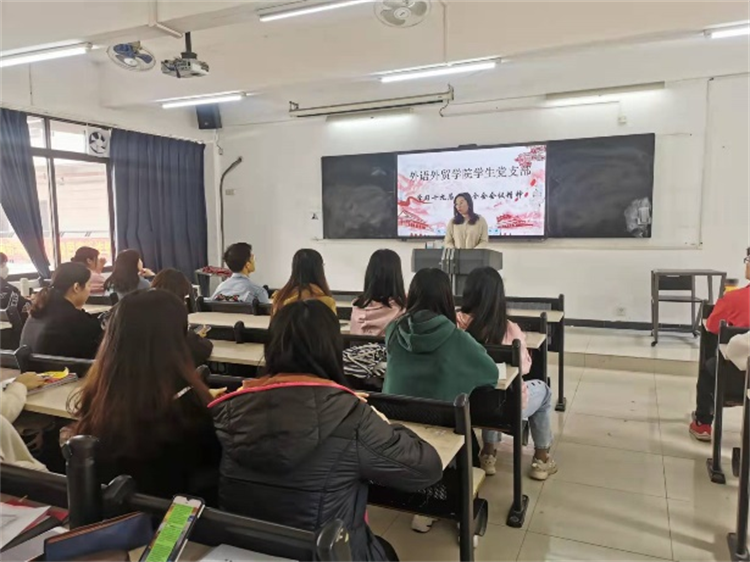 为深入学习领会党的十九届六中全会精神,11月19日下午,外语外贸学院党总支学生党支部组织全体党员共46名同志在1207教室学习本次会议精神。会议由学生党支部书记陈琪同志主持,党总支副书记刘良出席会议。