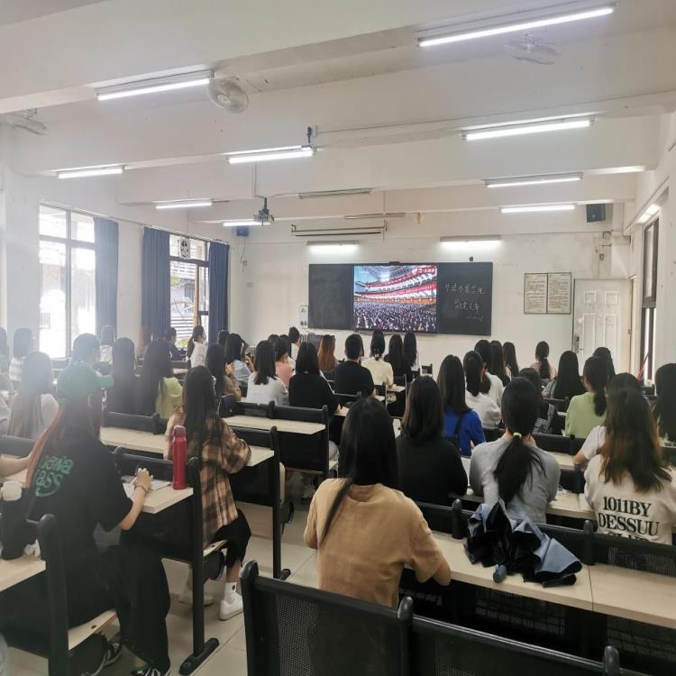 2022年10月16日,中国共产党第二十次全国代表大会在北京人民大会堂隆重召开。上午9点50分,外语外贸学院学生党支部组织全体党员、积极分子到教室集体观看二十大直播,听取习近平总书记代表第十九届中央委员会向大会作了题为《高举中国特色社会主义伟大旗帜 为全面建设社会主义现代化国家而团结奋斗》的报告。