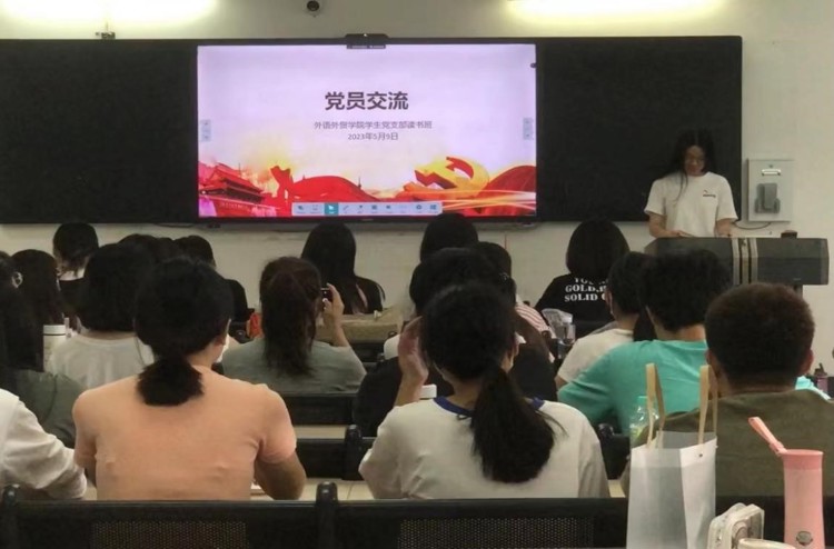 2022年5月8日,外语外贸学院学生党支部《学习贯彻习近平新时代中国特色社会主义思想主题教育》读书班开班了。会议由党支部书记陈琪同志主持。首先观看了视频,让广大党员了解本次学习的总要求:学思想、强党性、重实践、建新功;明确本次学习要达到的具体目标,以及告知全体党员读书班的安排。