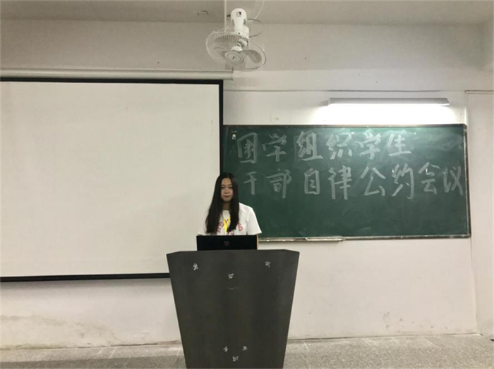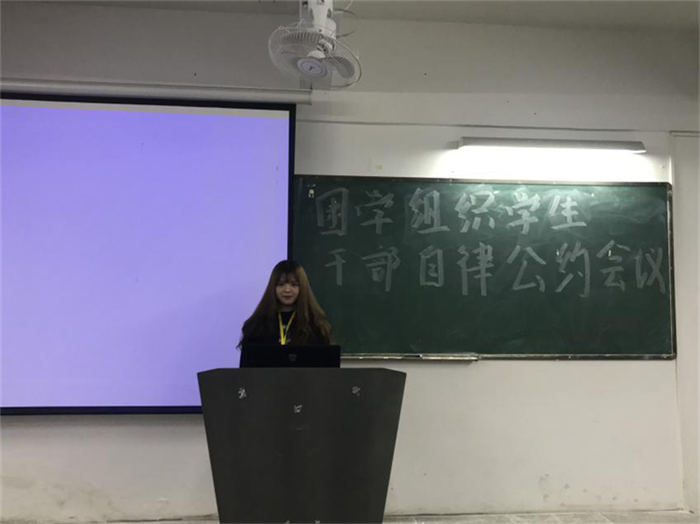 2018年11月26日晚上19点在2506课室举行了外语外贸学院团学干部学习自律公约。