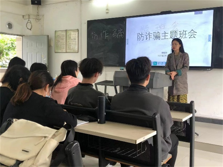 当今社会,电信诈骗案件越来越多,犯罪分子利用一些学生的虚荣心、贪便宜、心思单纯等心理特点实施各种诈骗伎俩,使部分学生和家长蒙受了巨大的财产损失和精神压力。为增加大家防骗意识,提高自我防范能力,外语外贸学院自开学以来,各带班辅导员深入班级,开展“防诈骗”主题班会活动;对外出实习的同学,也积极转发防骗链接,提醒他们在校外也同样要小心、谨慎。
